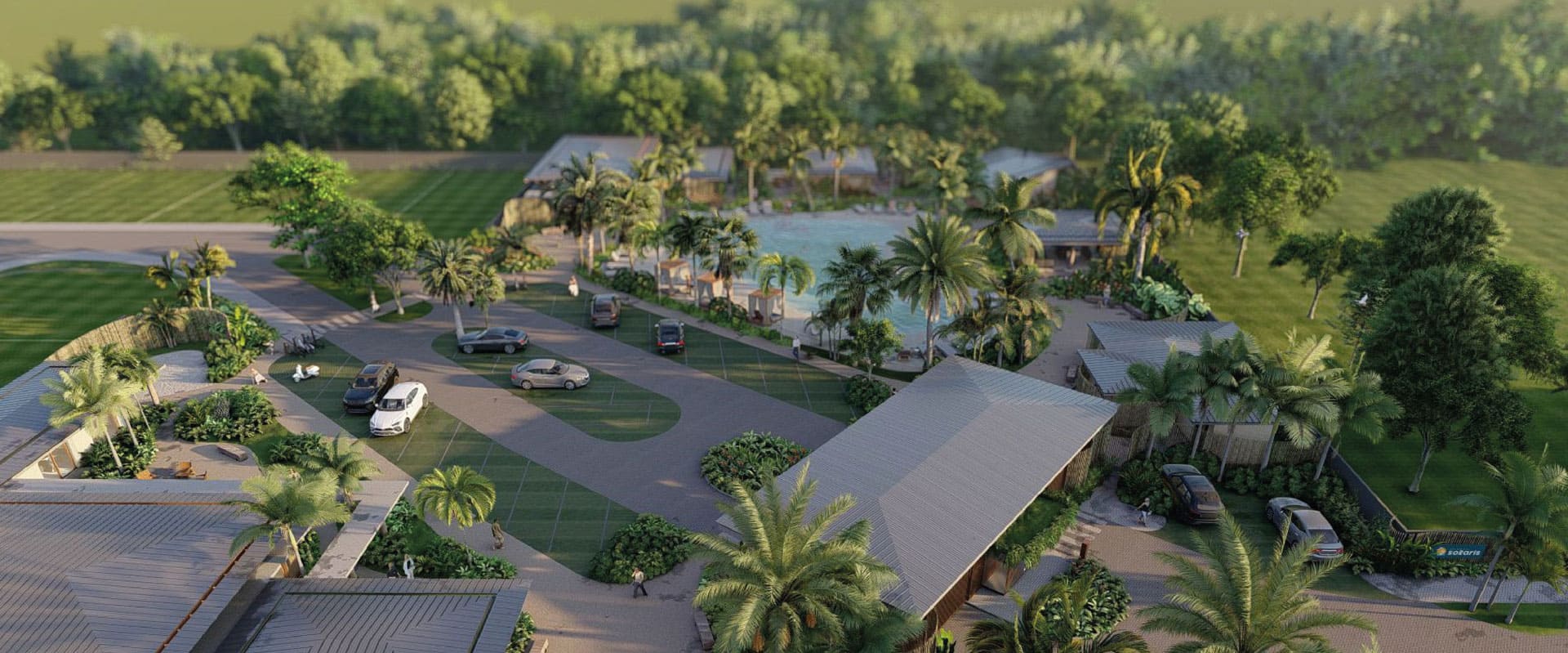 piscina com praia • salão gourmet • salão de festas • cinema • brinquedoteca • coworking • mini market • spa • sauna • academia • quadras esportivas • espaço pet • trilhas